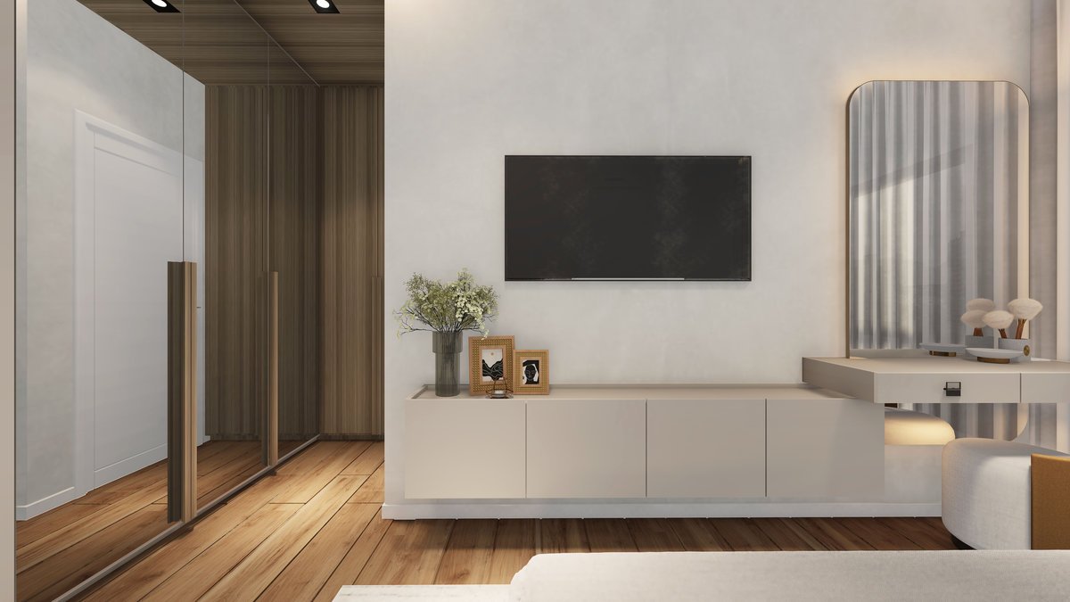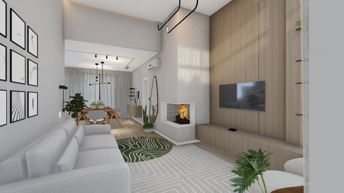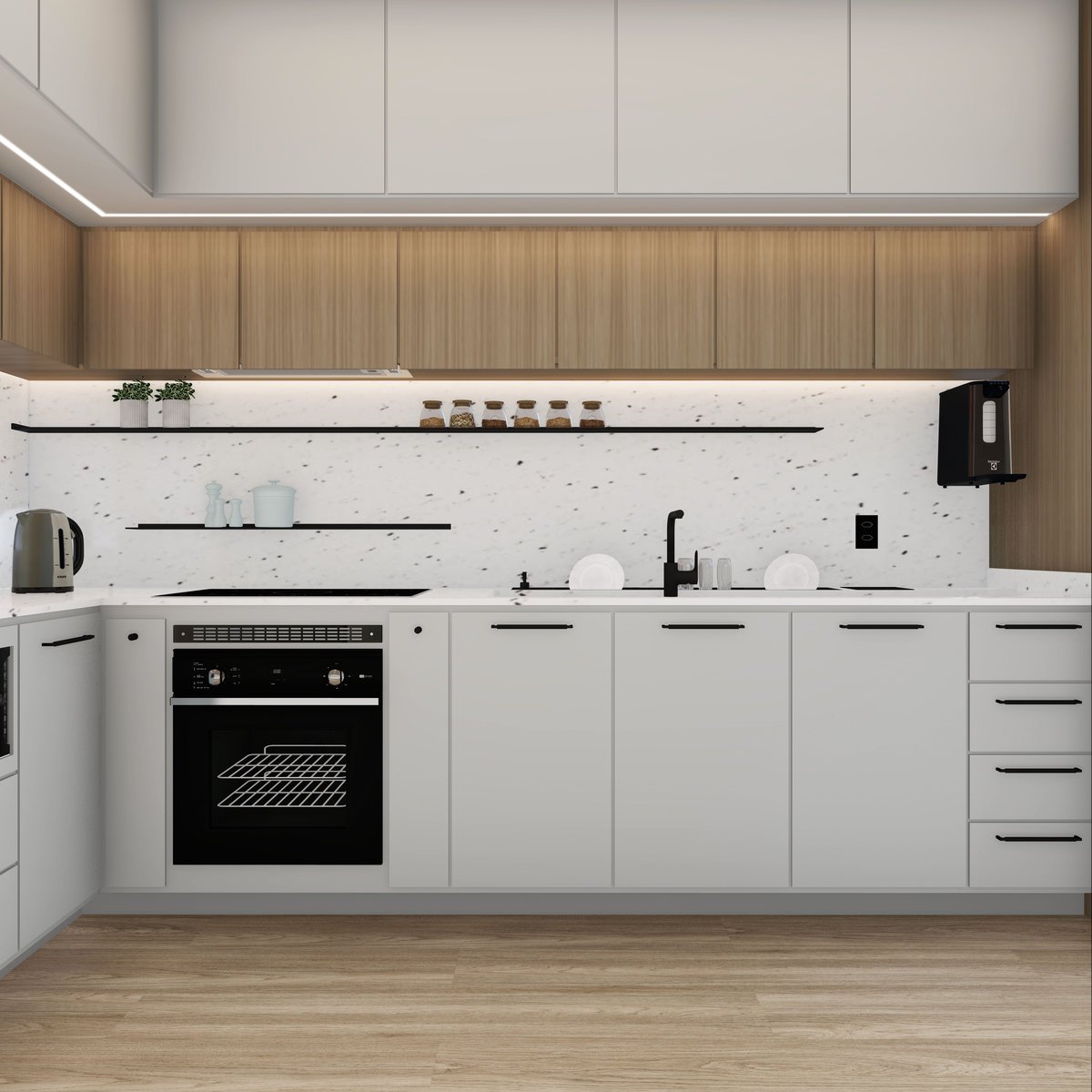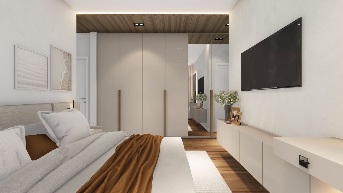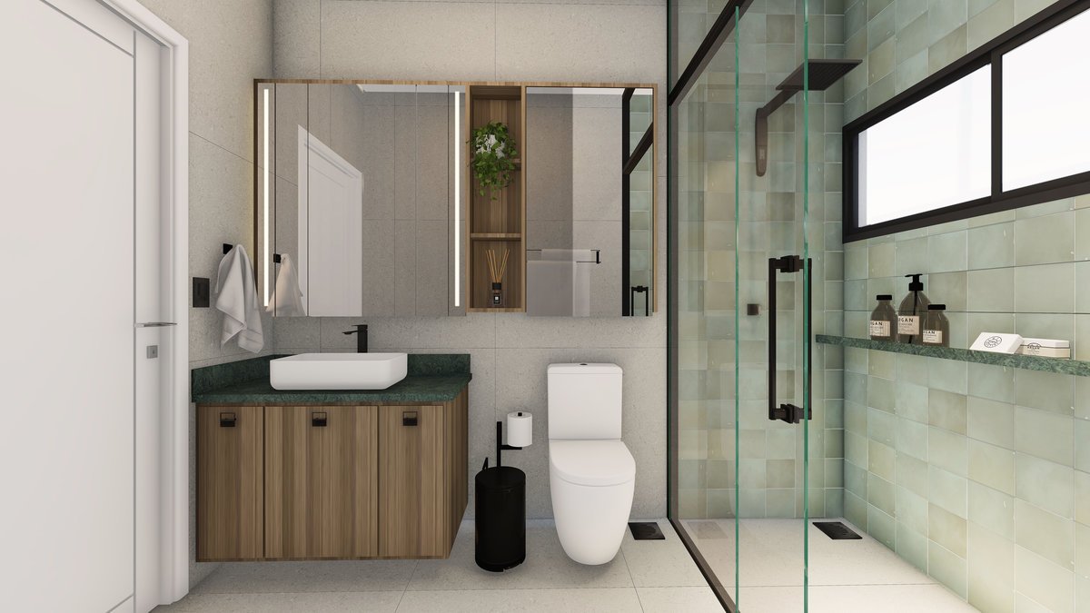 O toque biofílico aparece de forma sutil, com texturas naturais e madeira, que trazem calor, conforto e conexão com a natureza, equilibrando a sobriedade do projeto. Cada ambiente foi pensado para funcionalidade, bem-estar e integração visual, garantindo que os espaços sejam ao mesmo tempo práticos e convidativos.