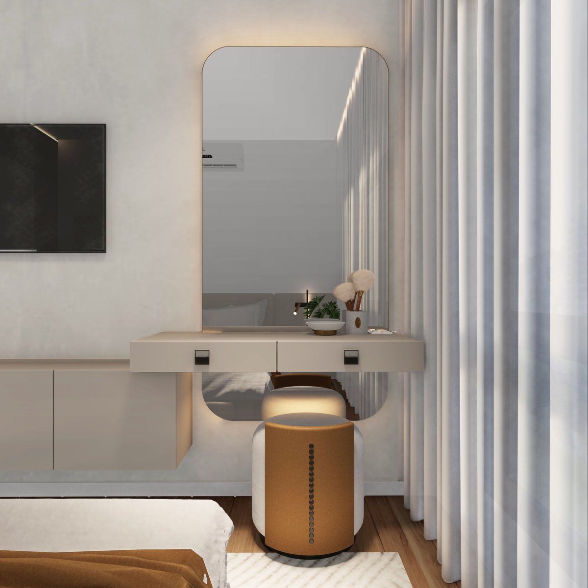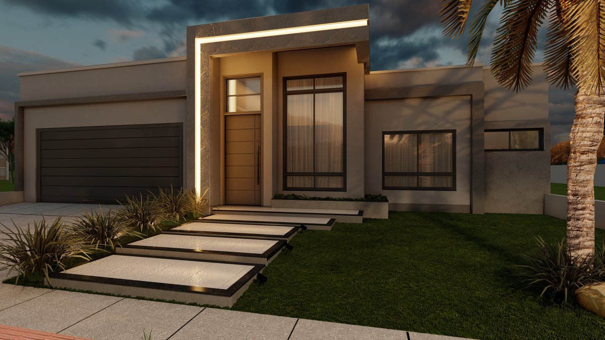 O projeto M.M. traduz um estilo contemporâneo, sofisticado e acolhedor. Tanto a fachada quanto os interiores exploram tons neutros e mais escuros, harmonizados com metais e aberturas pretas, criando uma estética moderna e elegante.
